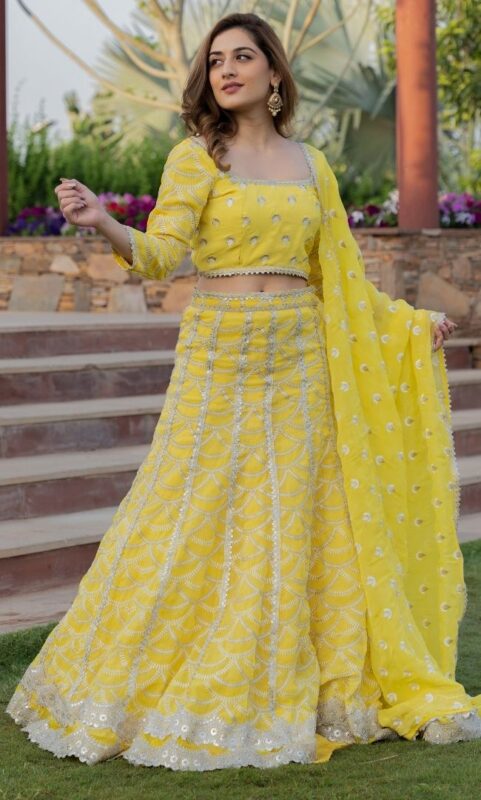 Haldi Yellow Lehenga Set Stylish Party Wear