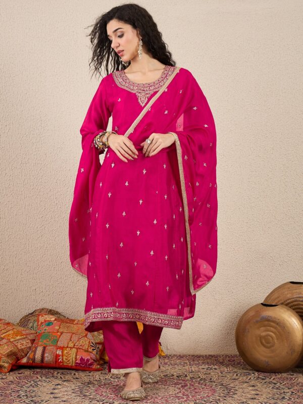 Adrika Pink Embroidered Anarkali Kurta Pant Dupatta Set