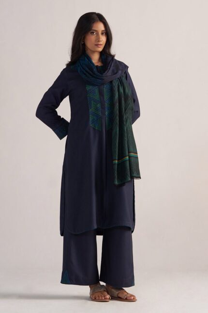 Drape yourself in regal elegance with this Wine Tissue Anarkali. The shimmering fabric catches the light beautifully, while the hand-embellished yoke with intricate mirror work adds festive charm. Soft pleats complete the graceful silhouette.