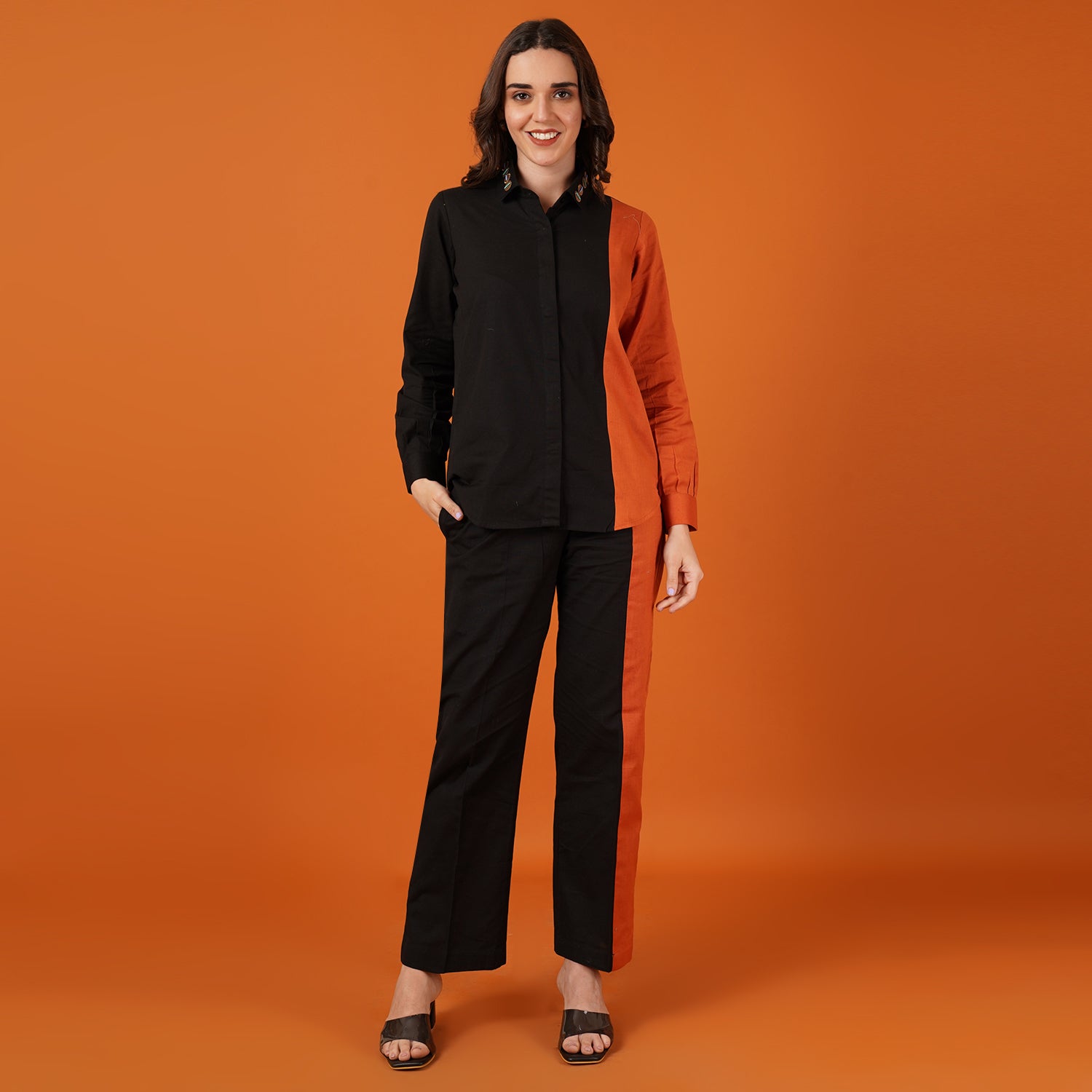 Home Women Co-ord Set Asymmetric Rust Black Co Ord Set Designer Wear