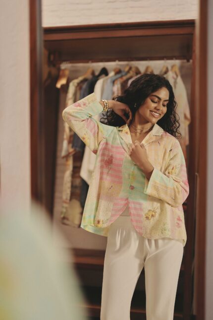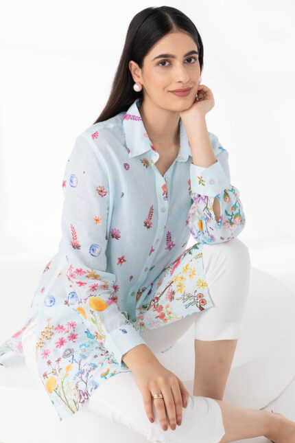 This shirt blends artistic floral prints with subtle embroidered detailing, creating a balanced look of softness and sophistication. Designed in pastel hues with a comfortable fit, it?s ideal for workdays, casual outings, or elevated everyday wear.
