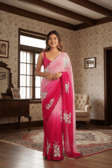 This georgette saree is perfect for any formal occasion. Made from high-quality material, it provides a luxurious and elegant look. Its lightweight and breathable fabric makes it comfortable to wear all day long. Enhance your traditional wardrobe with this timeless piece.