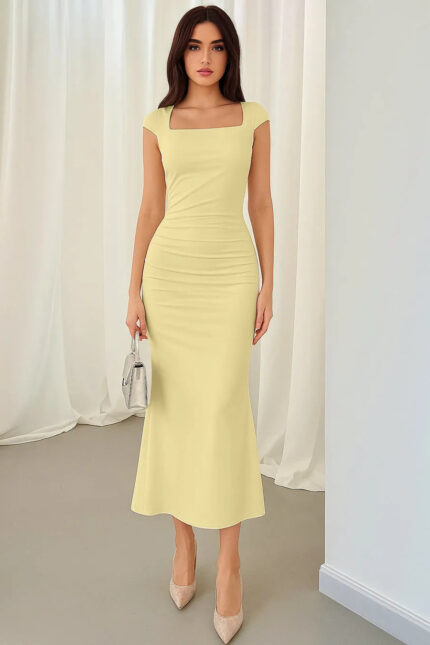 Update your wardrobe with this Ruched Bodycon Midi Dress with Floral Print and Spaghetti Straps. It?s a stylish piece that?s perfect for any occasion. The ruched design gives it a flattering look, while the dress is versatile enough to wear from day to night.