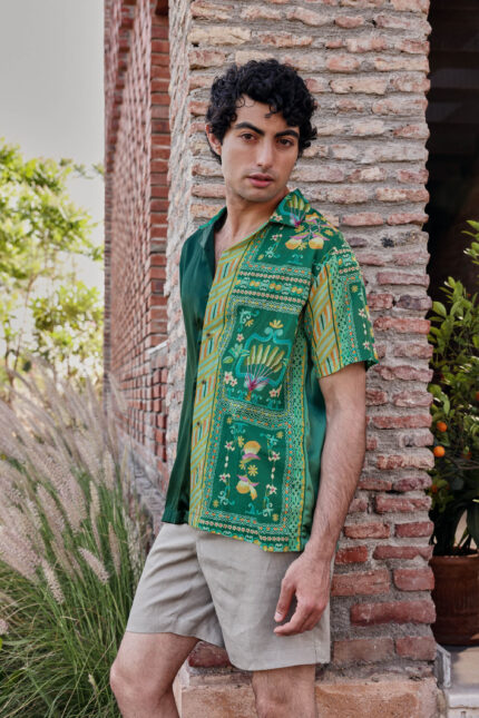 A maximalist feast for the eyes, The Goan Coast Shirt brings together juicy reds, playful chilis, and coastal nostalgia in one bold print. Crafted from 100% Modal Satin, it delivers a soft sheen, fluid drape, and breathable comfort that moves effortlessly from dinner parties to post-drink plans. The cream base and checkered border ground its artistic chaos, creating balance in a shirt made for those who like to stand out.