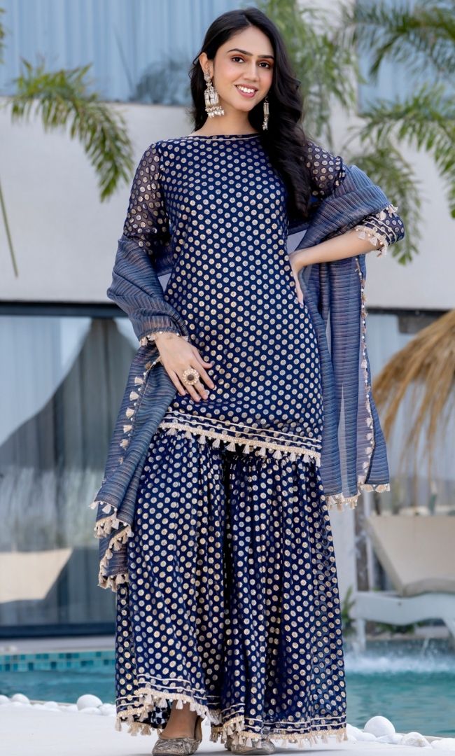 Lara Blue Brasso Sharara Set Elegant Festive Outfit