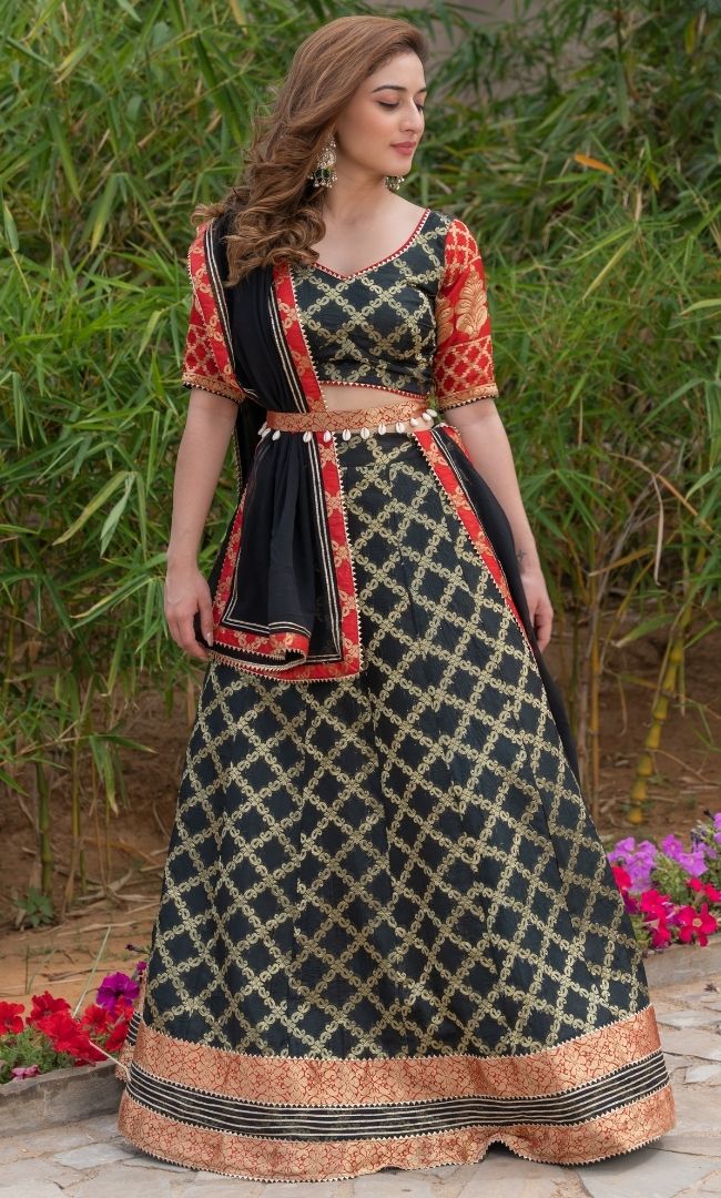 Black Gold Brocade Lehenga