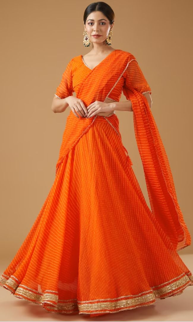 Orange Bandhani Lehenga Designer Ethnic Wear