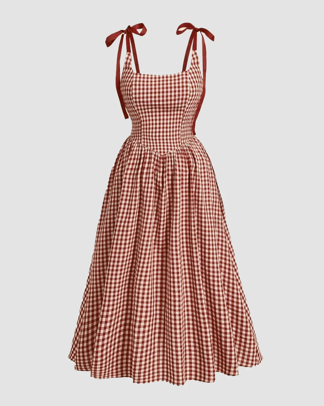 Say hello to the Summer Elegant Grid Shoulder Tie Red Cami Dress. This classic cami dress is giving picnic-in-the-park meets retro glam. With a cute red gingham print and tie-up shoulder straps, it brings summer charm in every stitch. The fitted top and flared skirt make it super flattering and breezy.