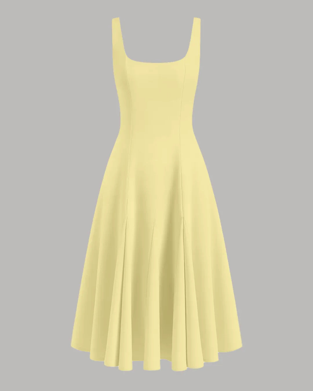 This sleeveless fit and flare dress is all about clean lines and an easy, flattering shape. Designed with a soft scoop neckline and a fitted bodice, it gently flares out from the waist to create a balanced, flowy look. The vanilla tone keeps it fresh and light, while the smooth fabric sits comfortably on the skin. This sleeveless fit and flare dress feels polished without being too much, making it a go-to for days when you want to look put together with zero effort.